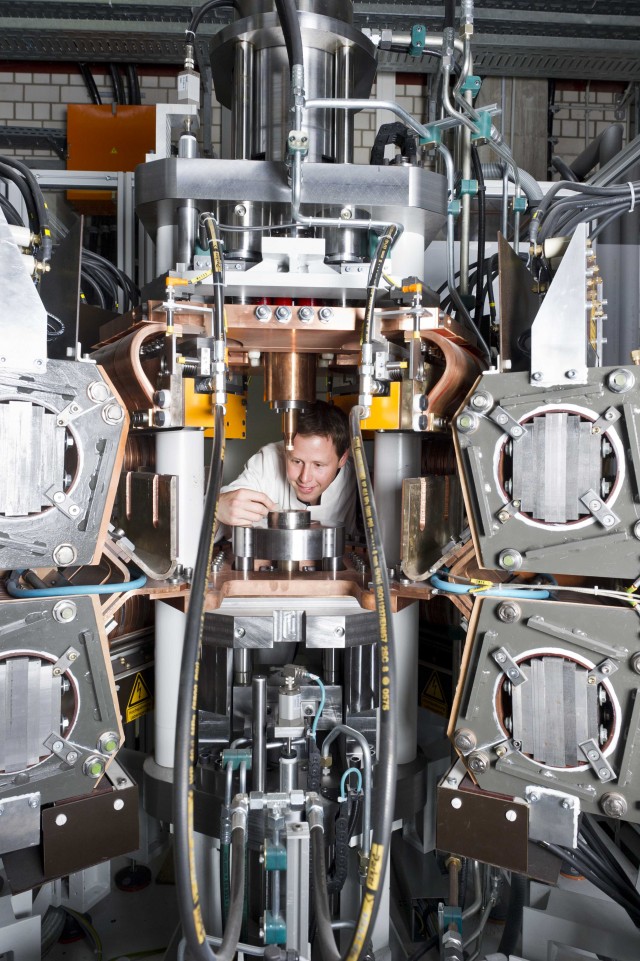 Stahlpulver wird durch Druck und elektrische Energie zu dichtem Material