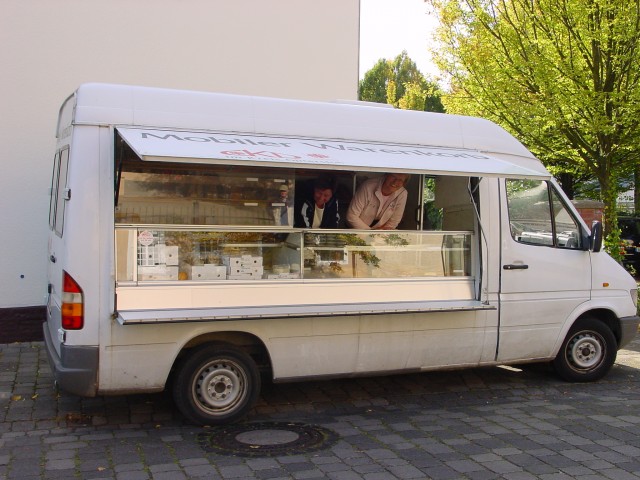 Eine soziale Einrichtung hilft Menschen in Not mit einem mobilen Supermarkt.